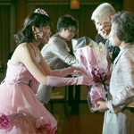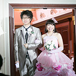 ステンドグラスの輝きと木のぬくもりに包まれて、本当に素敵な挙式になりました。ドレスの白がきれいに映えて、写真も更に素敵な写りになりました。「よい式だった」とセレモニー全体がゲストの方々にとても好評でした。