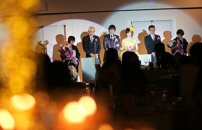 いつもスタッフの事まで気遣ってくださる優しさが印象的なおふたりでした。お兄様ご夫婦へのサプライズ等、ゲスト皆様への想いが伝わってくる穏やかでおふたりらしい素敵なパーティになりました。お忙しい中での準備で色々大変だったと思いますが「思い出に残る一日になった」の言葉をとても嬉しく思っています。これからも変わらず、お互いを優しく想い合う仲の良いおふたりでいてくださいね。おめでとうございます!