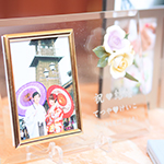 10月の結婚式ということもあり、秋らしさとハロウィンをイメージしてコーディネートしました。パーティ会場の入り口にかぼちゃの風船を飾ったり、送賓ギフトもこだわりました。パーティ会場のコーディネートは秋らしく落ち着いた雰囲気の中にも、白いお花を中心にオレンジや、黄色い花をアクセントにかわらしさも演出しました。
