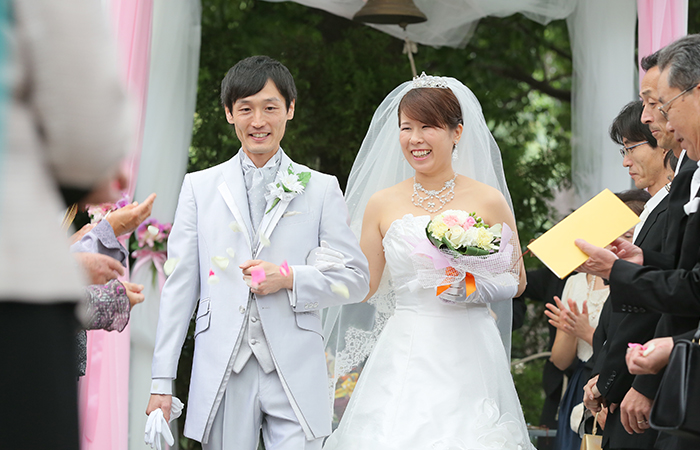 急な変更にも対応していただき、助かりました。いろいろとお願いしたにもかかわらず、すべて叶えていただいて感謝しています。当日は緊張している私たちのために、面白トークで緊張をほぐしてくれたおかげで、とても楽しく過せました。担当の藤原さんがやさしく声がけをしてくれて安心して結婚式を行うことができました!