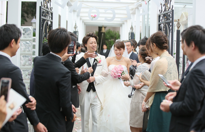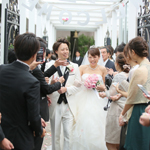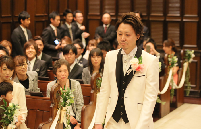 扉が開く直前は緊張やたくさんの想いが込み上げてきて、泣きそうになりましたが、ゲストの顔が見えた時には何より嬉しい気持ちでいっぱいになりました。挙式の最中も皆様に見守られているんだなと感じましたし、サプライズの歌をゲストの皆様から歌っていただいて、本当に幸せだな、と感じました。