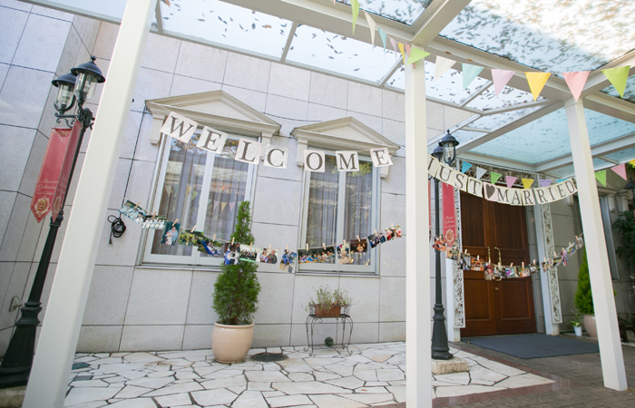 ゲスト全員が待ち時間も楽しめるように会場やガーデンにたくさんの写真を貼りました。子供も楽しめるようにフラッグや風船、ハンモックなどを飾りとにかく賑やかな雰囲気を演出しました。