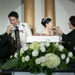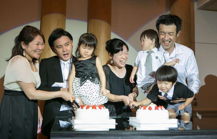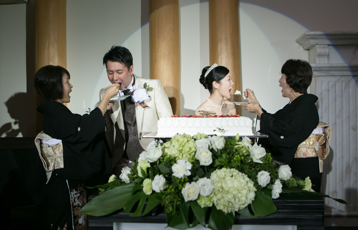 お色直しは母が結婚式に着たドレスと同じ色で入場しました。その際に母の結婚式の写真をスクリーンに映してもらいました。また、ふたりとも兄・姉が結婚式をあげていなかったので、ケーキカットのセレモニーをサプライズでやってもらいました。両夫婦ともとても喜んでもらえたので、やって良かったと思いました。