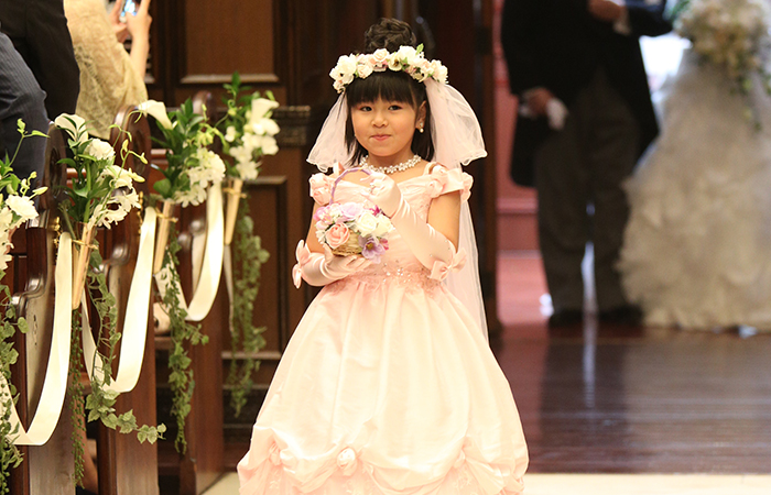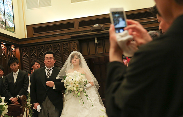 始まる前はとても緊張しましたが、神父さんやスタッフの方がやさしくフォローして下さったおかげで良い式になりました。入場前に流したチャペルムービーはとても感動的で、ゲストからも好評でした。聖歌隊の歌声と生演奏も本当に素敵で、幸せな気持ちでいっぱいになりました。