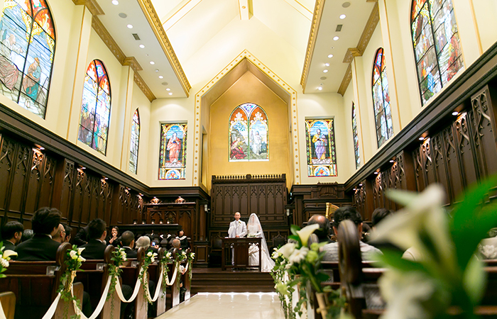 天候に恵まれ、快晴の中での挙式だったため、ステンドグラスが本領発揮してくれました。席数やバージンロードの長さもちょうど良く、重厚かつアットホームな空間になったと思います。聖歌隊やパイプオルガンなどの生演奏は当日初めて聞きましたが、迫力があり感動しました。厳かさも増して、お願いしてよかったと思っています。
