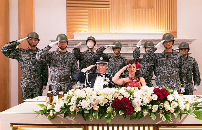 お互いの職場からの来賓が多く、完全に異業種同士でしたので、自己紹介を兼ねて双方の仕事に関係のある飾り付けを意識しました。新郎(航空自衛官)の撮影した航空機の写真や、作成した模型を飾ったり、新婦(新聞社勤務)の職場で作成した、新郎新婦の誕生日の新聞紙面を壁に貼ったりしました。また新婦が手芸や工作を趣味としているため、ウェルカムボードや受付飾り等、自作できるものはなるべく自作しました。特にウェルカムボードは、以前から興味のあった切り絵に挑戦しました。評判も良く、やりがいもあり、非常に楽しかったです。