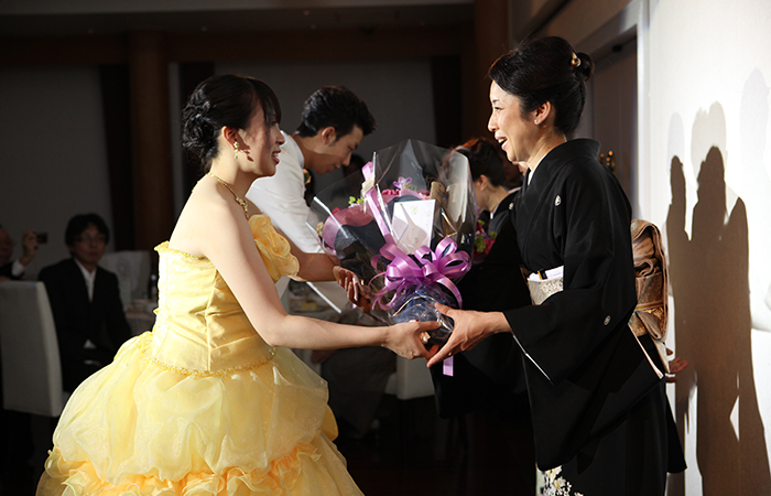 キャンドルサービスではまわるテーブル数が多かったのですが、スタッフがずっとエスコートしてくれたのでスムーズにできました。「おめでとうございます!」とスタッフ全員で言ってくださいました。皆さんいつも笑顔で優しい言葉をかけてくださって心強かったです。