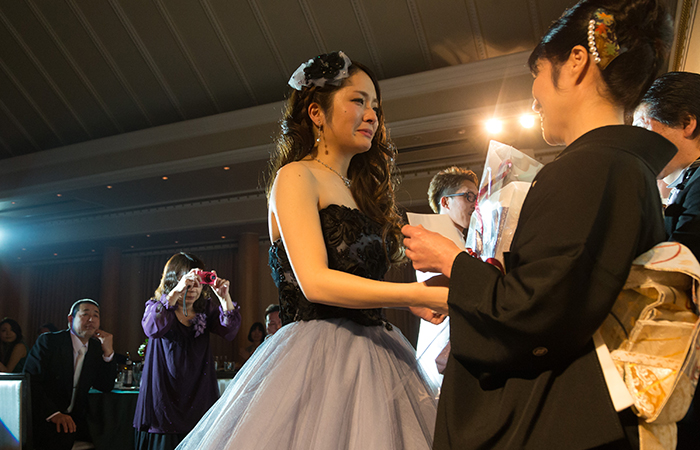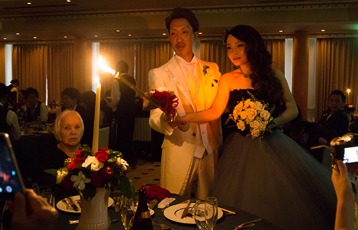 新婦入場前のムービーが本当に素敵な演出だと思います。絶対泣いてしまいます!新しく始められたという「ファミリーオース」というセレモニー(両家の両親に参加してもらい、相手の両親と手をつなぎ、全員が1つになる形をつくります)もやってよかったです。