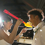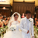 息子にエスコートしてもらってのお色直し退場は、ゲスト席からも応援の声をもらったりとか。息子大活躍の結婚式でした(笑)。盛り上げ役は友人たちにおまかせ!余興ではみんなでペンライトダンスを披露してくれて、とても面白かったですね。たくさん笑いました!