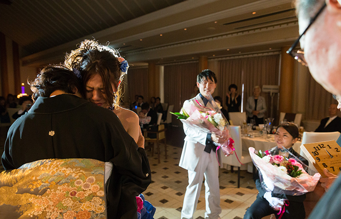 チャペルムービーは入場前にお父さんと2人でいろいろと思い出話をしながら見ることができました。チャペルムービーをみた人からは「とても感動した。」と言ってもらえ、作成して良かったと思います!!