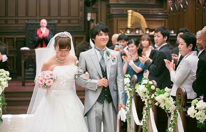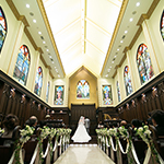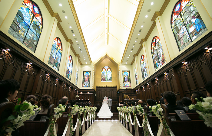 ステンドグラスがとてもきれいで、このチャペルに一目惚れでした。神聖な雰囲気が白のウェディングドレスにとても合っていましたし、加えて生演奏の美しい音色に感動しきりでした。