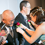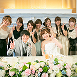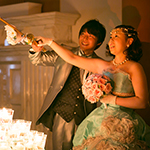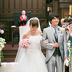 明るくいつも笑顔だったおふたり。ゲストの皆様も明るい方ばかりで、当日はずっと和やかな雰囲気でした。教会式では緊張されていましたが、おふたりの幸せ パワーで皆さん笑顔でしたね。お色直しの美月さんのカラードレスは本当に好評で、髪型も上手なアクセサリーアレンジでとてもステキでした。「わあー!」っ と歓声が上がっていましたね。