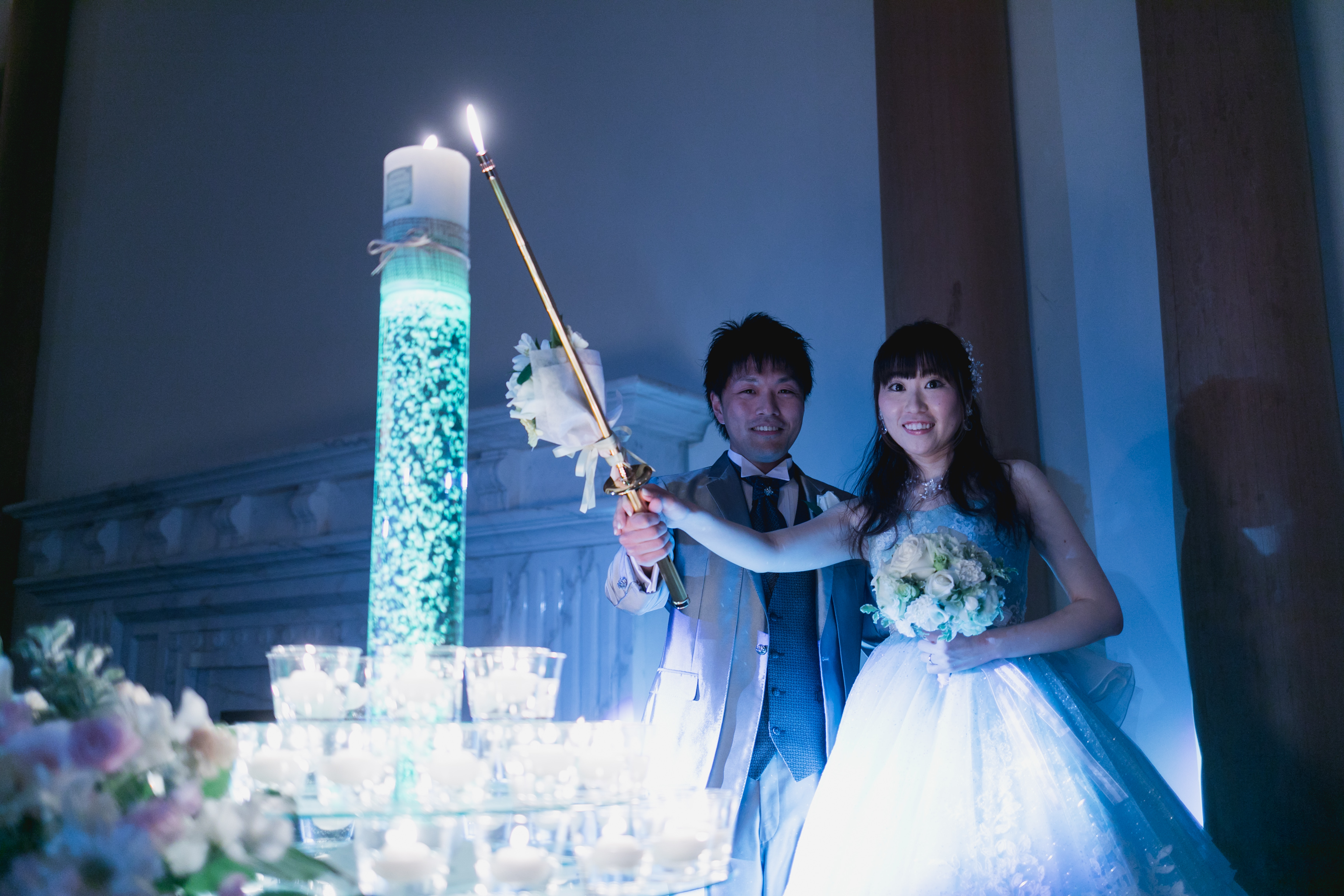 新婦へのサプライズはスタッフからの提案もありやらせていただきました。新婦の友達に声をかけてフォトムービーを作成し、新郎がバラ108本を持って入場、感謝の気持ちを伝えるというサプライズです。スタッフの完璧なフォローのおかげで、成功することができました。サプライズは苦手な性格でしたが、新婦が結婚式以降毎日DVDを見ているので、その姿を見ると「やって良かった」と心から思います。アルカサール川越で結婚式をして良かったです。