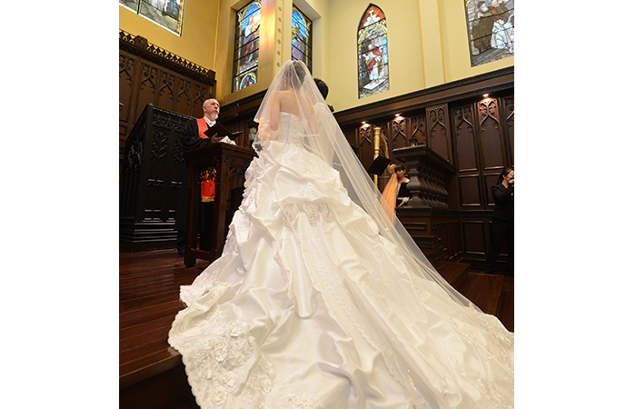 - チャペルの雰囲気。特にステンドグラスと生演奏