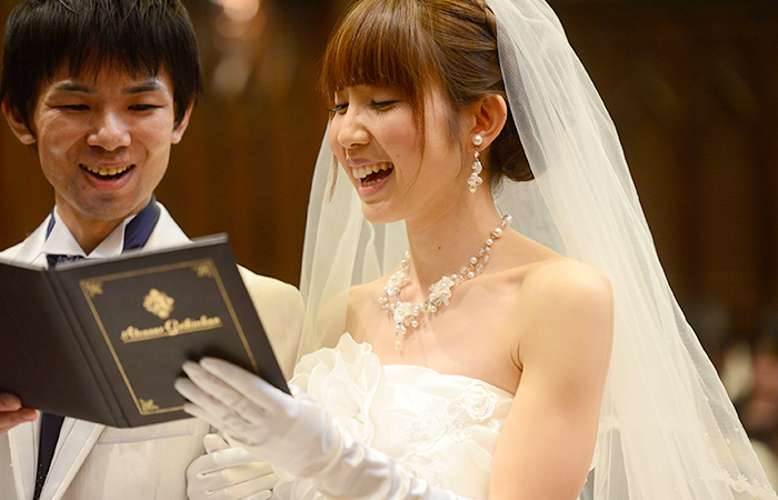 ステンドグラスと生演奏、厳かな雰囲気で二人の思い描いていた挙式となりました。式前の練習ではうまく出来ていた進行も本番では緊張してしまい、ちょっとしたハプニングも(笑)。友人に「それもふたりらしくて可愛かったよ」と言ってもらえたので、良い思い出になりました。