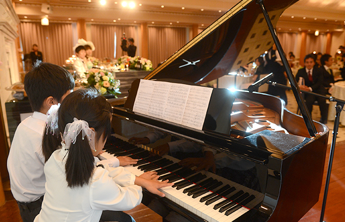 お色直し入場ではバルーンサービスをしました。大きな風船を割り、中から小さなハート型の風船が飛び出すという演出で、特に小さな子ども達が喜んでいました。この演出は可愛いのでゲストの皆様に好評でした。